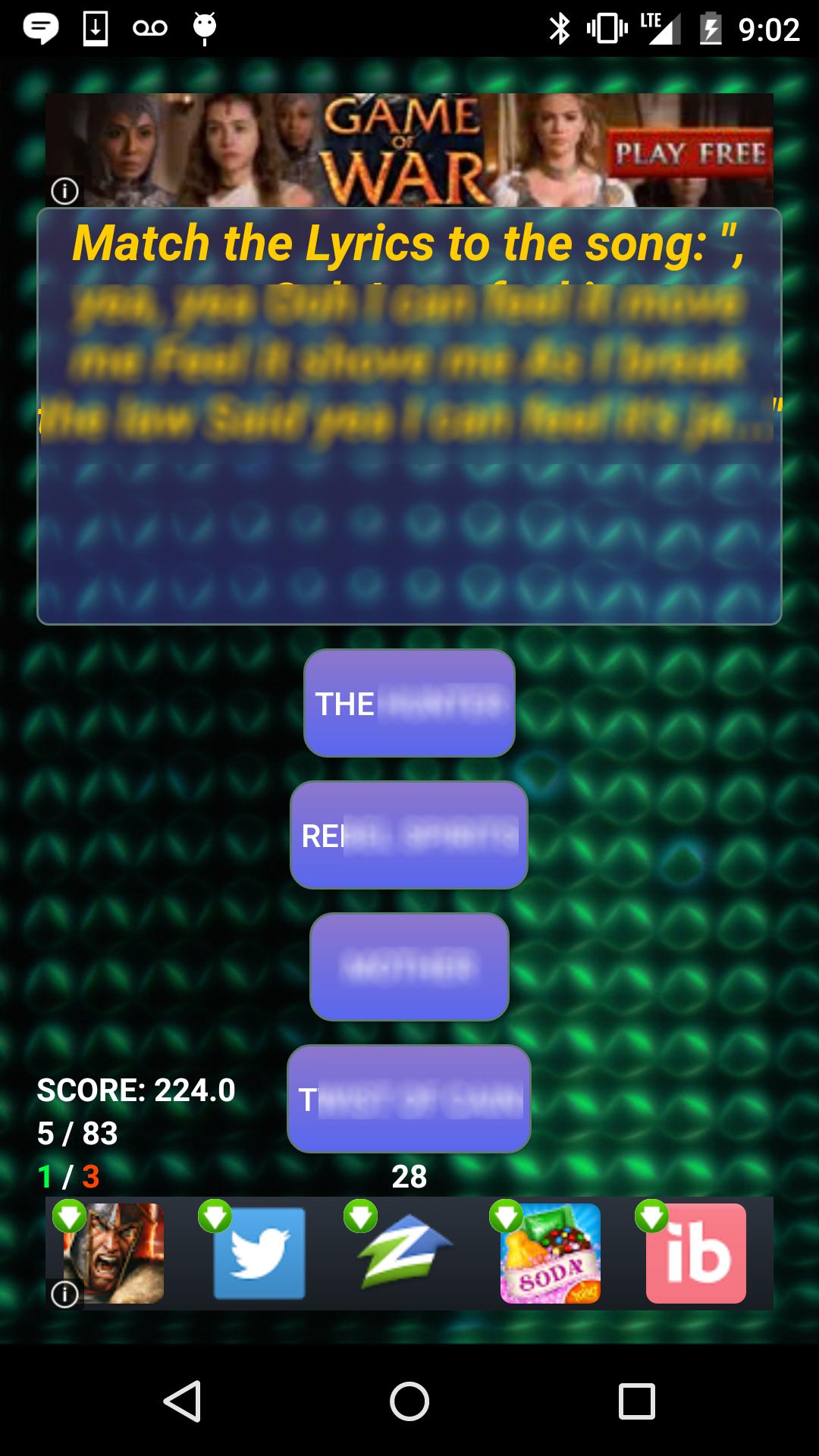 Además de los puntos que obtienes por responder correctamente cada pregunta de prueba sobre la música y las letras de Lucky Dube Songs, también obtienes un gran bono cada vez que completas una cuestionario. ¡Cuanto mejor lo hagas, más grande es la bonificación! ¡Descargue este juego de preguntas de trivia y canciones musicales de Dube ahora y compita ahora para obtener su nombre / mensaje en el marcador para que todos lo vean!